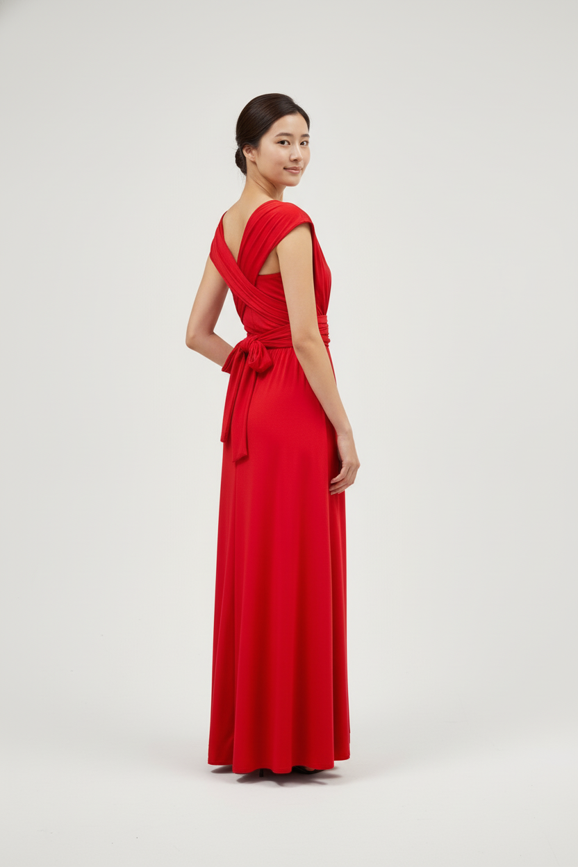 巻き方・着方を変えるだけで、チューブトップ、ワンショルダー、ホルターネック、キャップスリーブ風など自由自在。